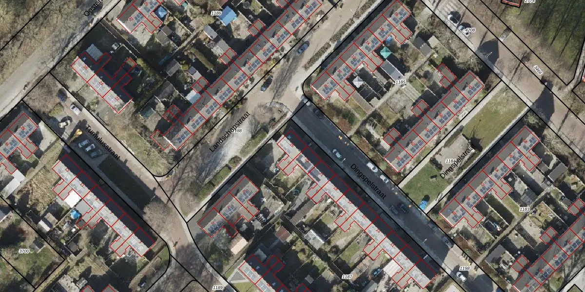 Het perceel waarop Dingspelstraat 25 staat heeft een oppervlakte van 5474 m². Dit is een zeer groot perceel. De perceeloppervlakte wordt geregistreerd door het Kadaster. Gedetailleerde informatie over de maten van dit perceel kunt u vinden in het rapport Kadastrale kaart met maatvoering van Dingspelstraat 25.