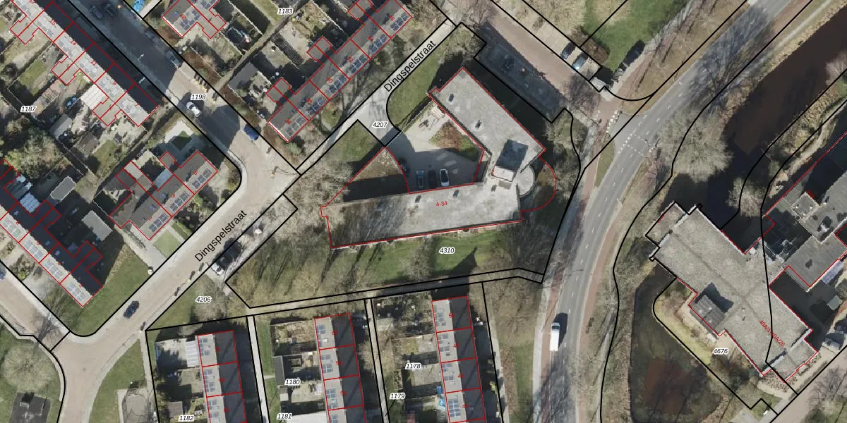 Het perceel waarop Dingspelstraat 30 staat heeft een oppervlakte van 2982 m². Dit is een zeer groot perceel. De perceeloppervlakte wordt geregistreerd door het Kadaster. Gedetailleerde informatie over de maten van dit perceel kunt u vinden in het rapport Kadastrale kaart met maatvoering van Dingspelstraat 30.