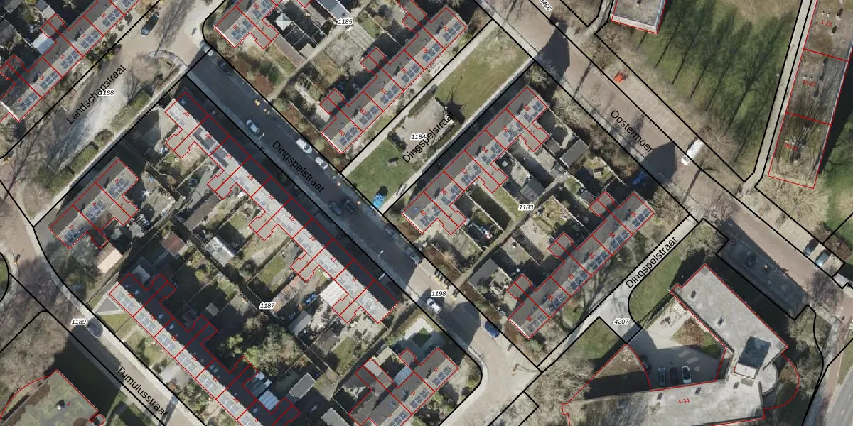 Het perceel waarop Dingspelstraat 48 staat heeft een oppervlakte van 2583 m². Dit is een zeer groot perceel. De perceeloppervlakte wordt geregistreerd door het Kadaster. Gedetailleerde informatie over de maten van dit perceel kunt u vinden in het rapport Kadastrale kaart met maatvoering van Dingspelstraat 48.