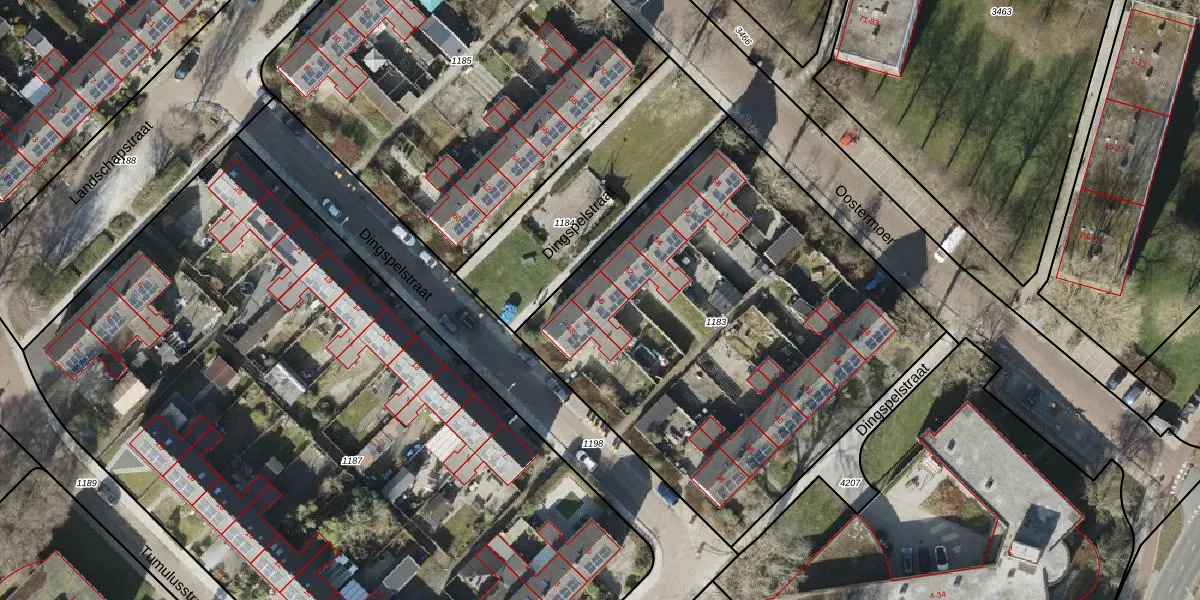 Het perceel waarop Dingspelstraat 50 staat heeft een oppervlakte van 2583 m². Dit is een zeer groot perceel. De perceeloppervlakte wordt geregistreerd door het Kadaster. Gedetailleerde informatie over de maten van dit perceel kunt u vinden in het rapport Kadastrale kaart met maatvoering van Dingspelstraat 50.