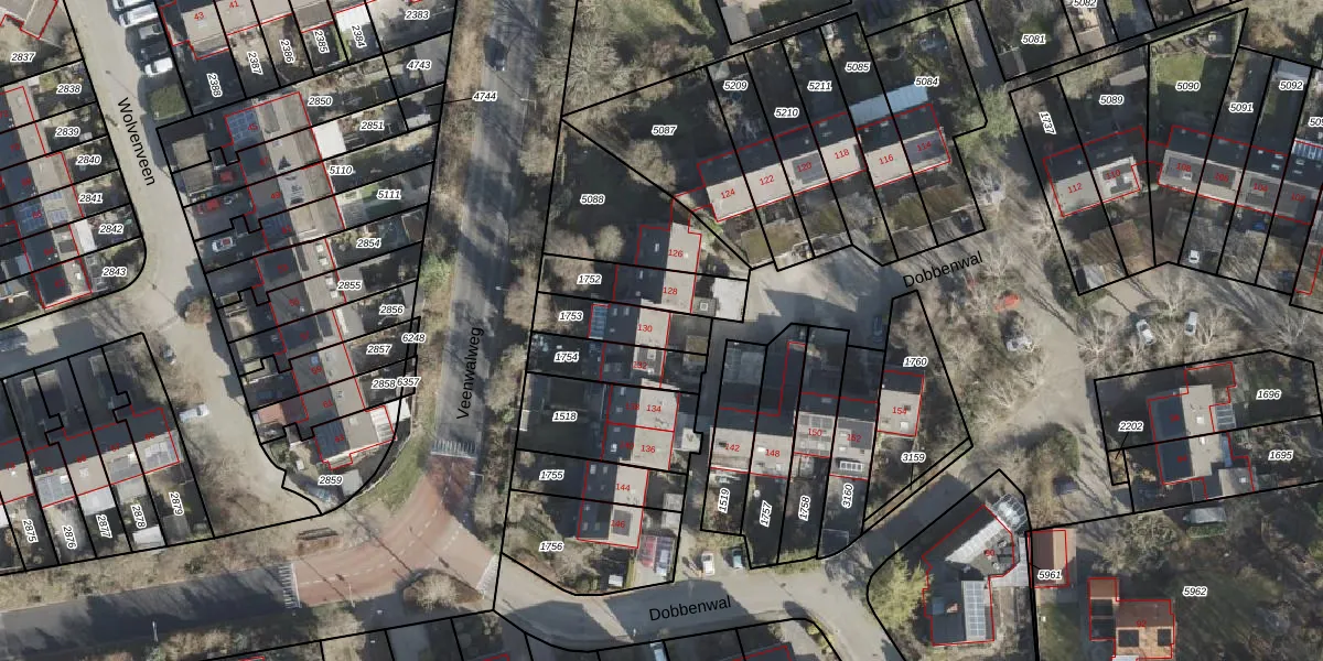 Het perceel waarop Dobbenwal 130 staat heeft een oppervlakte van 162 m². Dit is een middelgroot perceel. De perceeloppervlakte wordt geregistreerd door het Kadaster. Gedetailleerde informatie over de maten van dit perceel kunt u vinden in het rapport Kadastrale kaart met maatvoering van Dobbenwal 130.