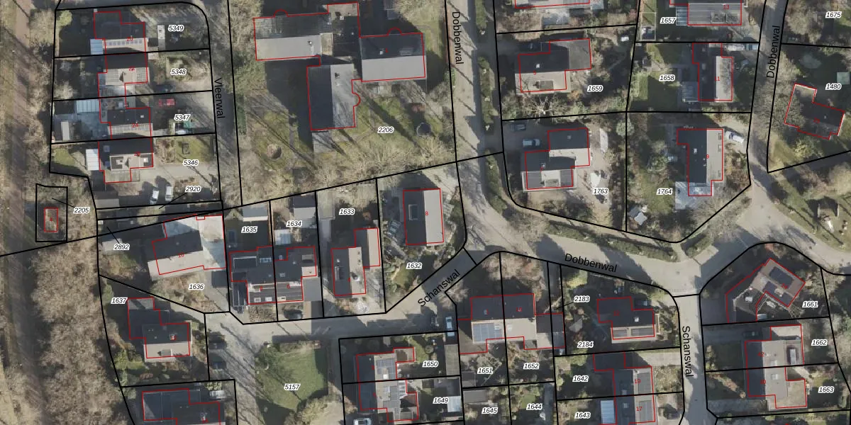 Gebruik de zoekbalk of klik op een perceel voor informatie over de adressen binnen dit perceel.