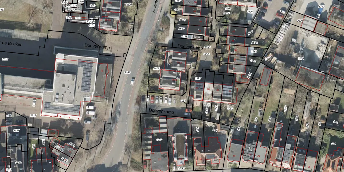 Het perceel waarop Doevenkamp 20 staat heeft een oppervlakte van 641 m². Dit is een groot perceel. De perceeloppervlakte wordt geregistreerd door het Kadaster. Gedetailleerde informatie over de maten van dit perceel kunt u vinden in het rapport Kadastrale kaart met maatvoering van Doevenkamp 20.
