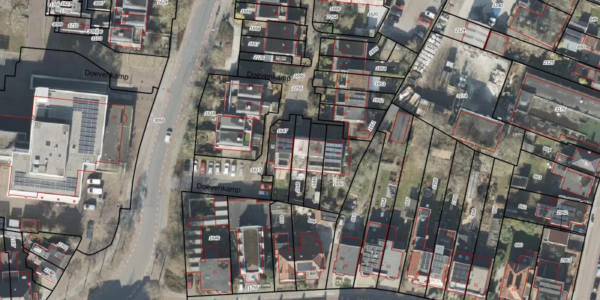 Doevenkamp 28 is gelegen op kadastraal perceel ASN00S1648. Deze kadastrale aanduiding is uniek en wordt gebruikt door het Kadaster om eigendomsrechten en andere zakelijke rechten vast te leggen. Het perceel maakt onderdeel uit van de kadastrale gemeente Assen.