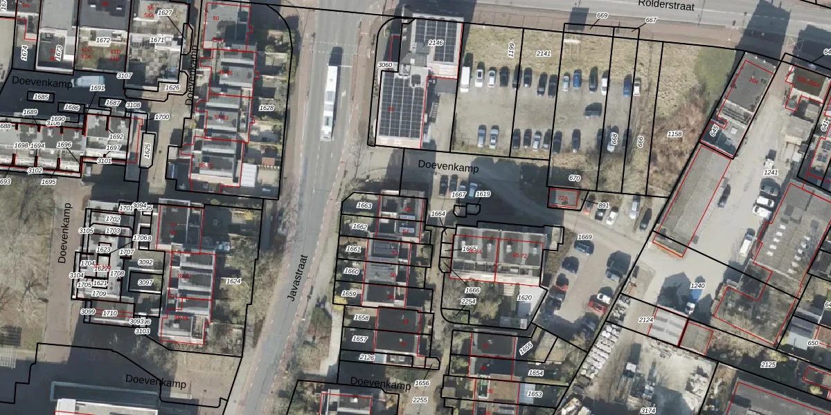 Doevenkamp 56 is gelegen op kadastraal perceel ASN00S1663. Deze kadastrale aanduiding is uniek en wordt gebruikt door het Kadaster om eigendomsrechten en andere zakelijke rechten vast te leggen. Het perceel maakt onderdeel uit van de kadastrale gemeente Assen.