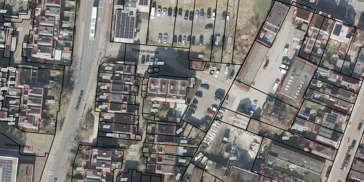 Het perceel waarop Doevenkamp 68 staat heeft een oppervlakte van 556 m². Dit is een groot perceel. De perceeloppervlakte wordt geregistreerd door het Kadaster. Gedetailleerde informatie over de maten van dit perceel kunt u vinden in het rapport Kadastrale kaart met maatvoering van Doevenkamp 68.