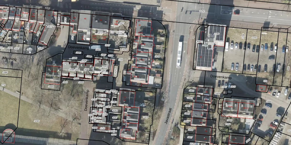 Het perceel waarop Doevenkamp 69 staat heeft een oppervlakte van 1097 m². Dit is een zeer groot perceel. De perceeloppervlakte wordt geregistreerd door het Kadaster. Gedetailleerde informatie over de maten van dit perceel kunt u vinden in het rapport Kadastrale kaart met maatvoering van Doevenkamp 69.