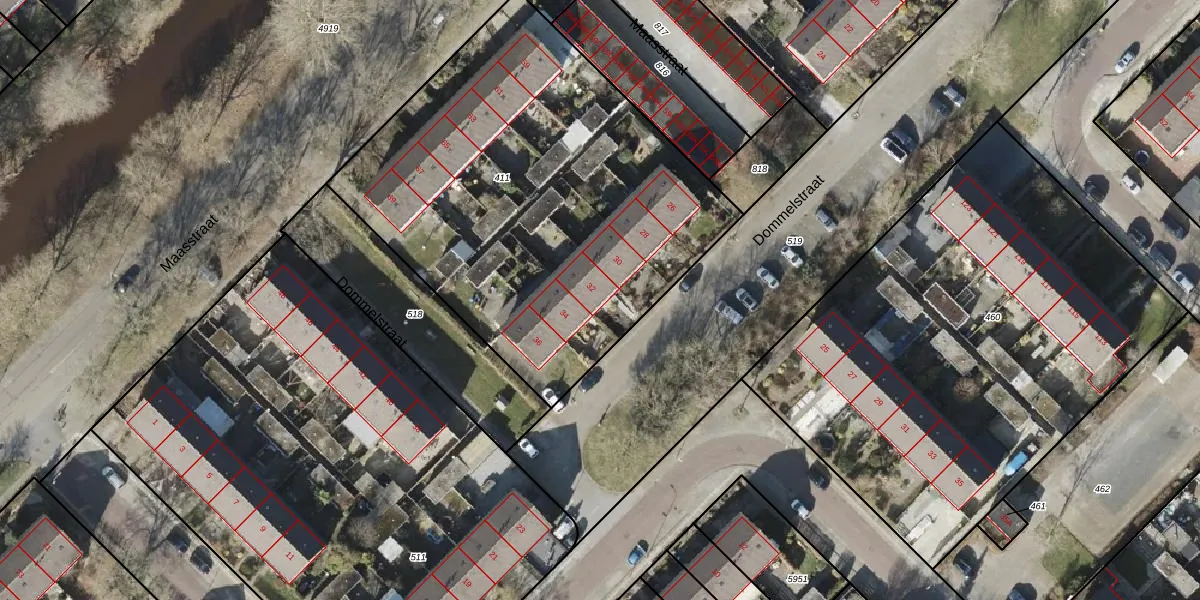 Dommelstraat 32 is gelegen op kadastraal perceel ASN00X411. Deze kadastrale aanduiding is uniek en wordt gebruikt door het Kadaster om eigendomsrechten en andere zakelijke rechten vast te leggen. Het perceel maakt onderdeel uit van de kadastrale gemeente Assen.
