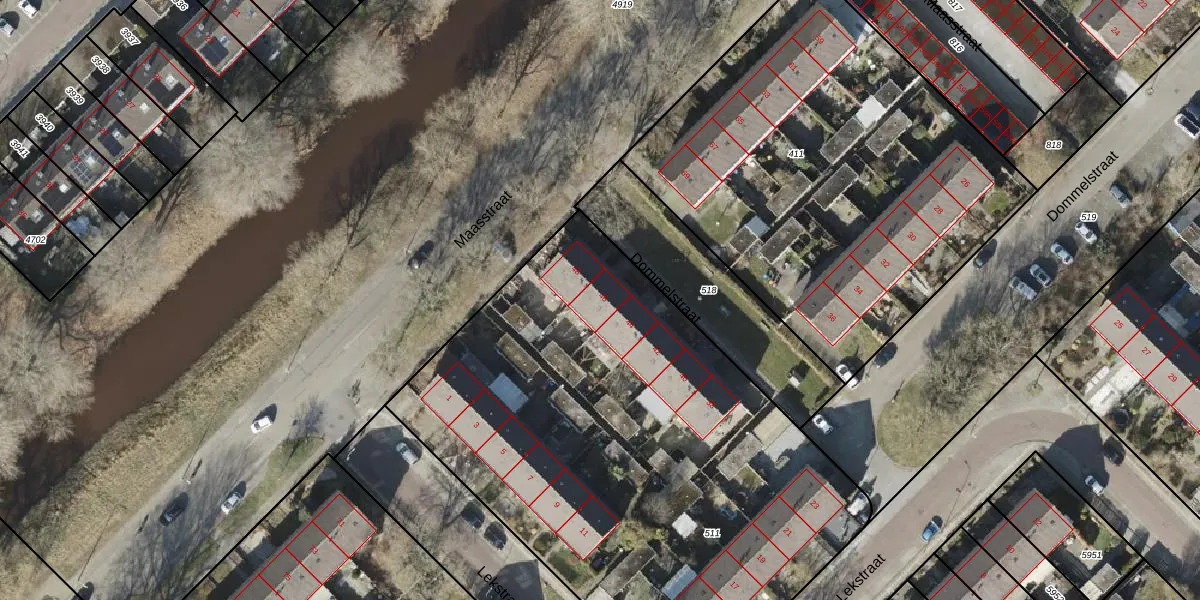 Het perceel waarop Dommelstraat 46 staat heeft een oppervlakte van 3261 m². Dit is een zeer groot perceel. De perceeloppervlakte wordt geregistreerd door het Kadaster. Gedetailleerde informatie over de maten van dit perceel kunt u vinden in het rapport Kadastrale kaart met maatvoering van Dommelstraat 46.