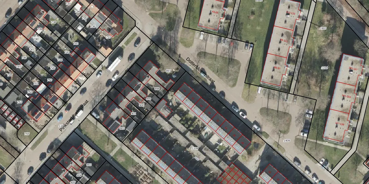 Dotterbloemstraat 14 is gelegen op kadastraal perceel ASN00V1104. Deze kadastrale aanduiding is uniek en wordt gebruikt door het Kadaster om eigendomsrechten en andere zakelijke rechten vast te leggen. Het perceel maakt onderdeel uit van de kadastrale gemeente Assen.