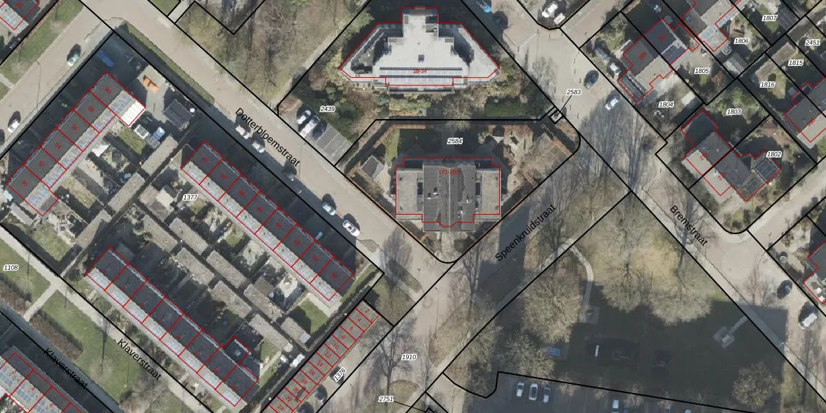 Het perceel waarop Dotterbloemstraat 187 staat heeft een oppervlakte van 1275 m². Dit is een zeer groot perceel. De perceeloppervlakte wordt geregistreerd door het Kadaster. Gedetailleerde informatie over de maten van dit perceel kunt u vinden in het rapport Kadastrale kaart met maatvoering van Dotterbloemstraat 187.