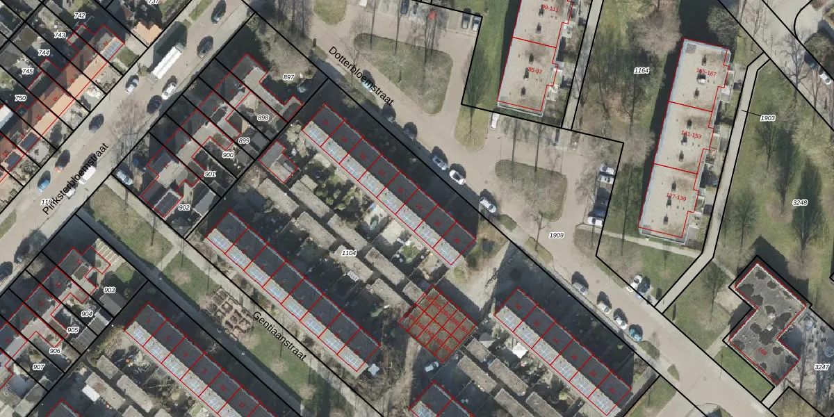 Dotterbloemstraat 24 is gelegen op kadastraal perceel ASN00V1104. Deze kadastrale aanduiding is uniek en wordt gebruikt door het Kadaster om eigendomsrechten en andere zakelijke rechten vast te leggen. Het perceel maakt onderdeel uit van de kadastrale gemeente Assen.