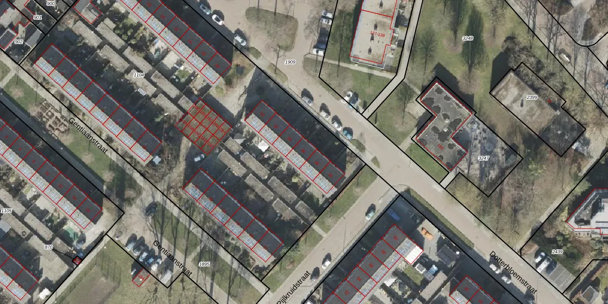 Het perceel waarop Dotterbloemstraat 36 staat heeft een oppervlakte van 5543 m². Dit is een zeer groot perceel. De perceeloppervlakte wordt geregistreerd door het Kadaster. Gedetailleerde informatie over de maten van dit perceel kunt u vinden in het rapport Kadastrale kaart met maatvoering van Dotterbloemstraat 36.