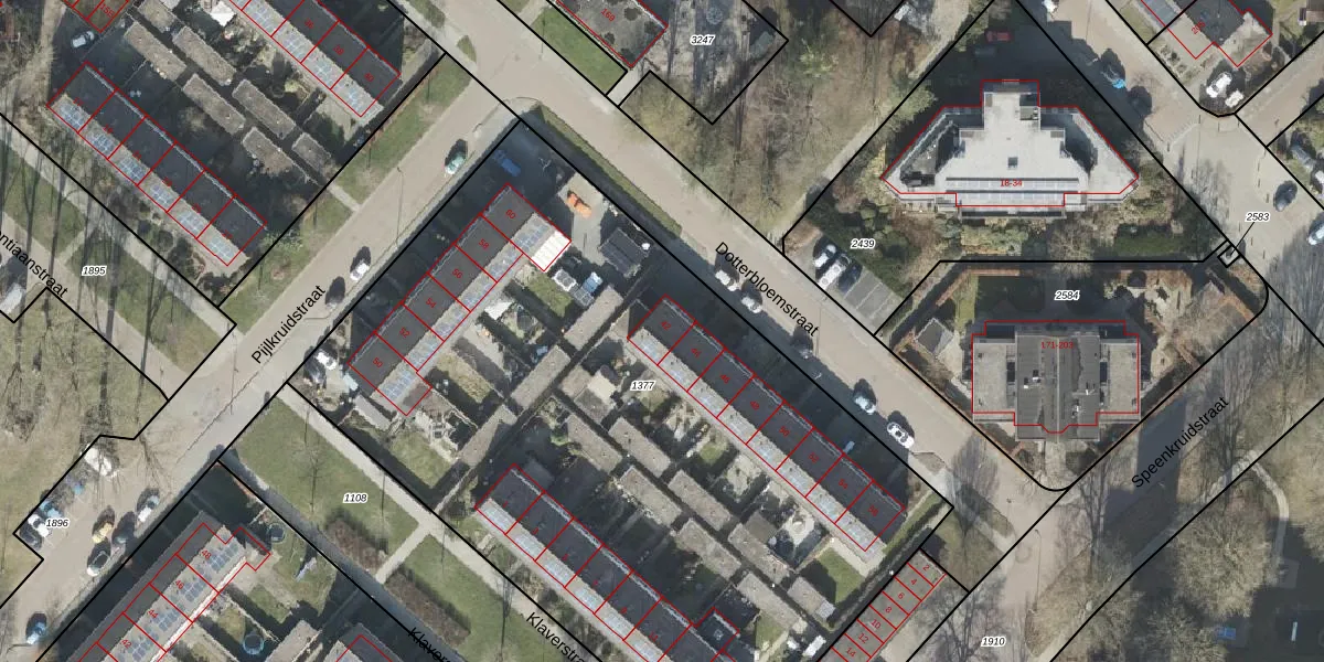 Het perceel waarop Dotterbloemstraat 42 staat heeft een oppervlakte van 4663 m². Dit is een zeer groot perceel. De perceeloppervlakte wordt geregistreerd door het Kadaster. Gedetailleerde informatie over de maten van dit perceel kunt u vinden in het rapport Kadastrale kaart met maatvoering van Dotterbloemstraat 42.