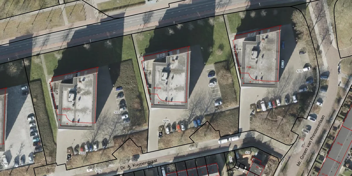 Het perceel waarop Dr. A. Kuyperstraat 72 staat heeft een oppervlakte van 3473 m². Dit is een zeer groot perceel. De perceeloppervlakte wordt geregistreerd door het Kadaster. Gedetailleerde informatie over de maten van dit perceel kunt u vinden in het rapport Kadastrale kaart met maatvoering van Dr. A. Kuyperstraat 72.