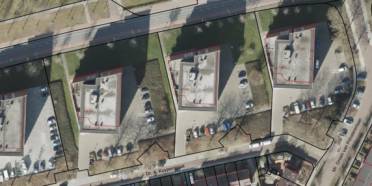 Het perceel waarop Dr. A. Kuyperstraat 90 staat heeft een oppervlakte van 3473 m². Dit is een zeer groot perceel. De perceeloppervlakte wordt geregistreerd door het Kadaster. Gedetailleerde informatie over de maten van dit perceel kunt u vinden in het rapport Kadastrale kaart met maatvoering van Dr. A. Kuyperstraat 90.