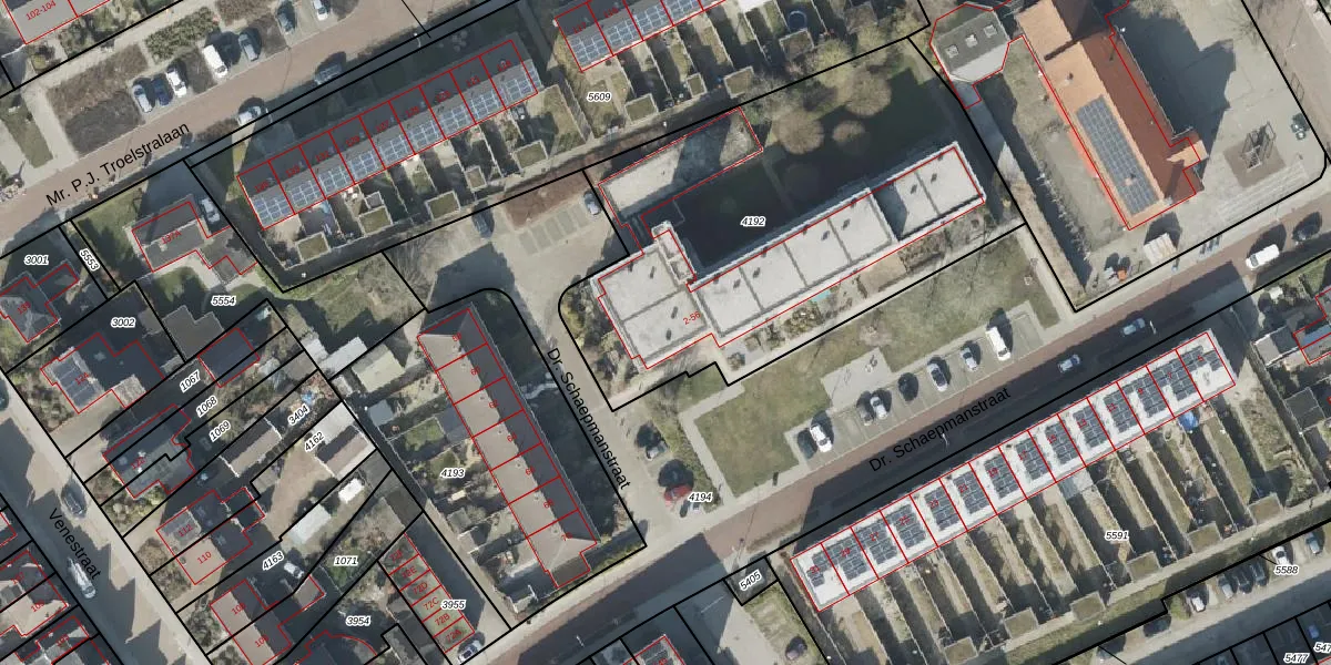 Dr. Schaepmanstraat 34 is gelegen op kadastraal perceel ASN00T4192. Deze kadastrale aanduiding is uniek en wordt gebruikt door het Kadaster om eigendomsrechten en andere zakelijke rechten vast te leggen. Het perceel maakt onderdeel uit van de kadastrale gemeente Assen.