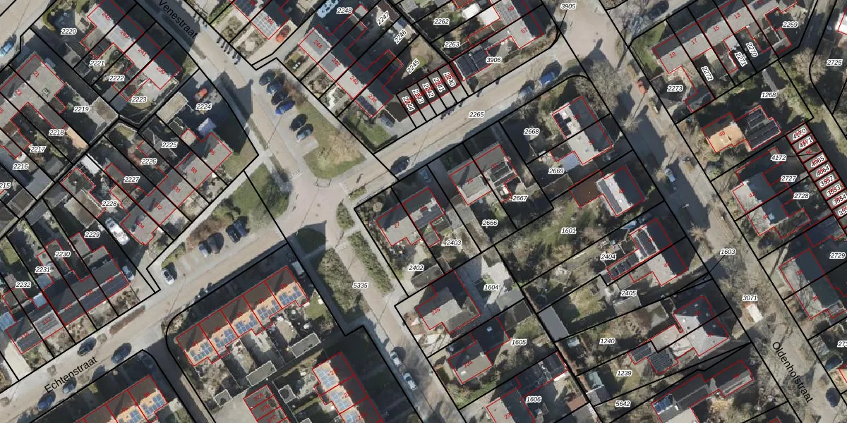 Gebruik de zoekbalk of klik op een perceel voor informatie over de adressen binnen dit perceel.