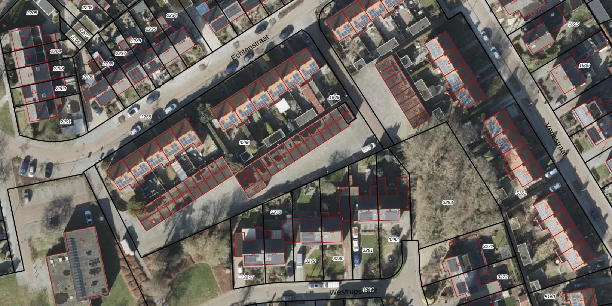 Het perceel waarop Echtenstraat 39-G staat heeft een oppervlakte van 3399 m². Dit is een zeer groot perceel. De perceeloppervlakte wordt geregistreerd door het Kadaster. Gedetailleerde informatie over de maten van dit perceel kunt u vinden in het rapport Kadastrale kaart met maatvoering van Echtenstraat 39-G.