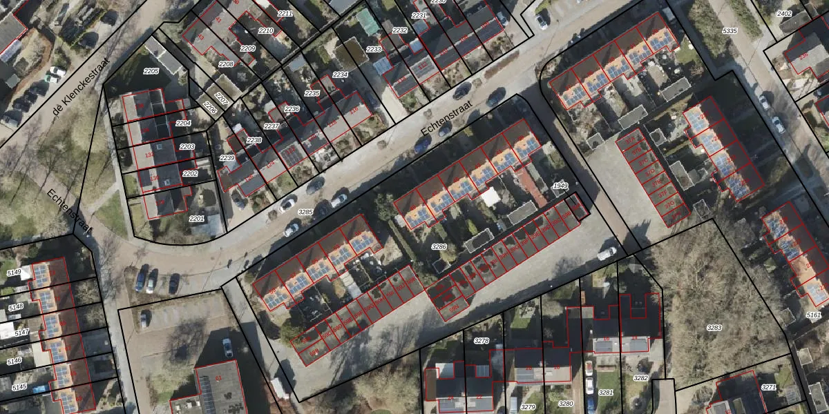Het perceel waarop Echtenstraat 49 staat heeft een oppervlakte van 3399 m². Dit is een zeer groot perceel. De perceeloppervlakte wordt geregistreerd door het Kadaster. Gedetailleerde informatie over de maten van dit perceel kunt u vinden in het rapport Kadastrale kaart met maatvoering van Echtenstraat 49.