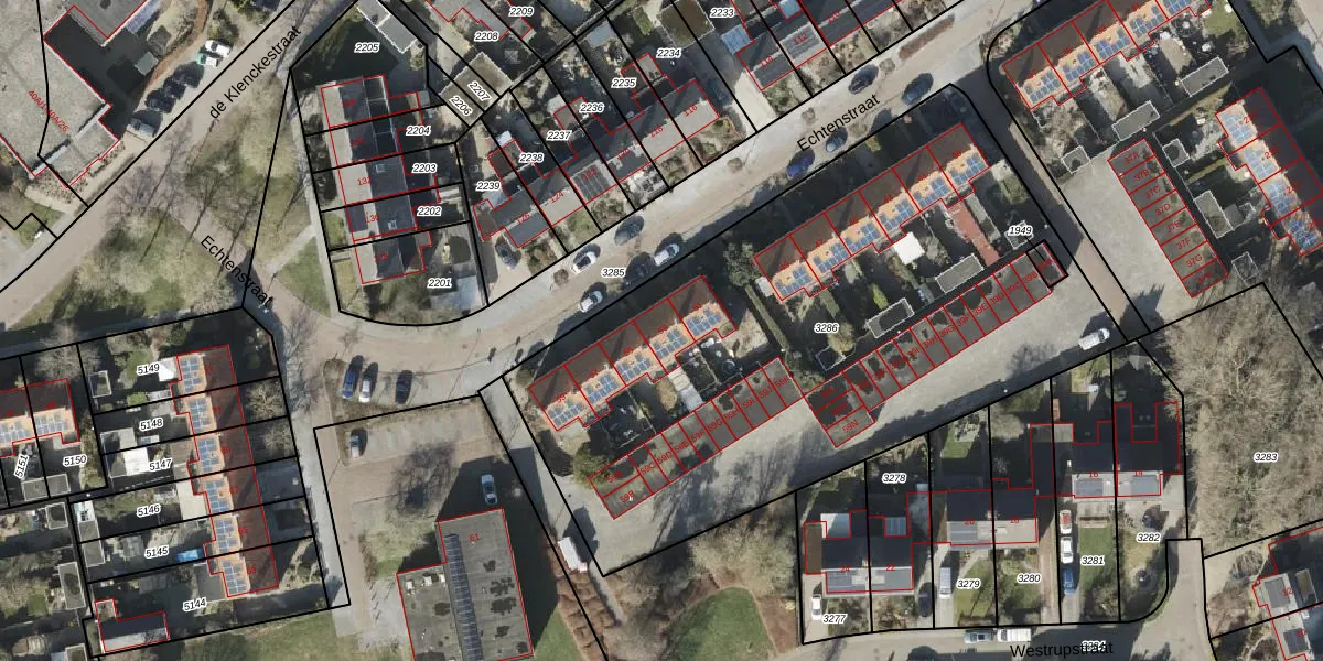 Het perceel waarop Echtenstraat 53 staat heeft een oppervlakte van 3399 m². Dit is een zeer groot perceel. De perceeloppervlakte wordt geregistreerd door het Kadaster. Gedetailleerde informatie over de maten van dit perceel kunt u vinden in het rapport Kadastrale kaart met maatvoering van Echtenstraat 53.