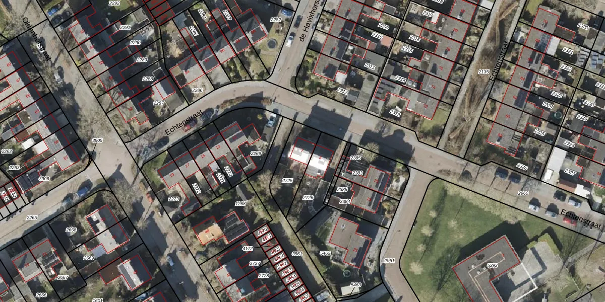 Gebruik de zoekbalk of klik op een perceel voor informatie over de adressen binnen dit perceel.