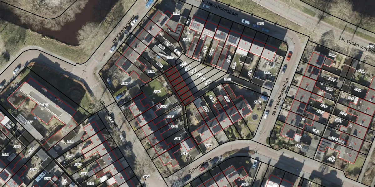 Gebruik de zoekbalk of klik op een perceel voor informatie over de adressen binnen dit perceel.