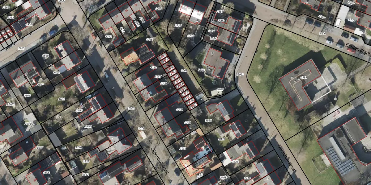 Gebruik de zoekbalk of klik op een perceel voor informatie over de adressen binnen dit perceel.