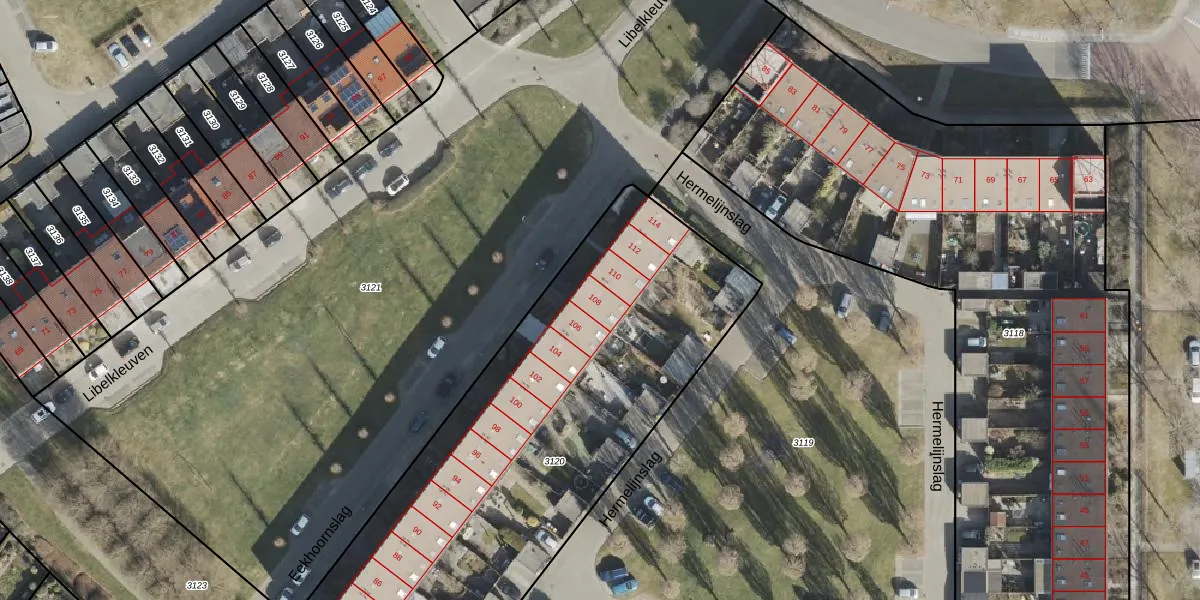 Het perceel waarop Eekhoornslag 108 staat heeft een oppervlakte van 2605 m². Dit is een zeer groot perceel. De perceeloppervlakte wordt geregistreerd door het Kadaster. Gedetailleerde informatie over de maten van dit perceel kunt u vinden in het rapport Kadastrale kaart met maatvoering van Eekhoornslag 108.