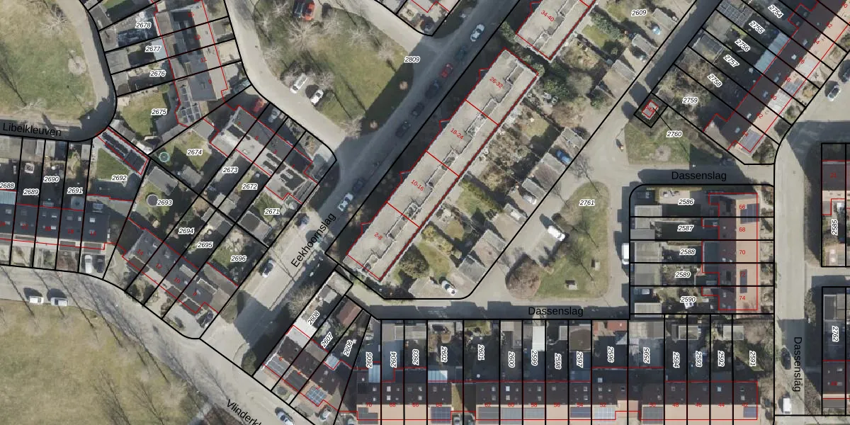 Het perceel waarop Eekhoornslag 14 staat heeft een oppervlakte van 5422 m². Dit is een zeer groot perceel. De perceeloppervlakte wordt geregistreerd door het Kadaster. Gedetailleerde informatie over de maten van dit perceel kunt u vinden in het rapport Kadastrale kaart met maatvoering van Eekhoornslag 14.