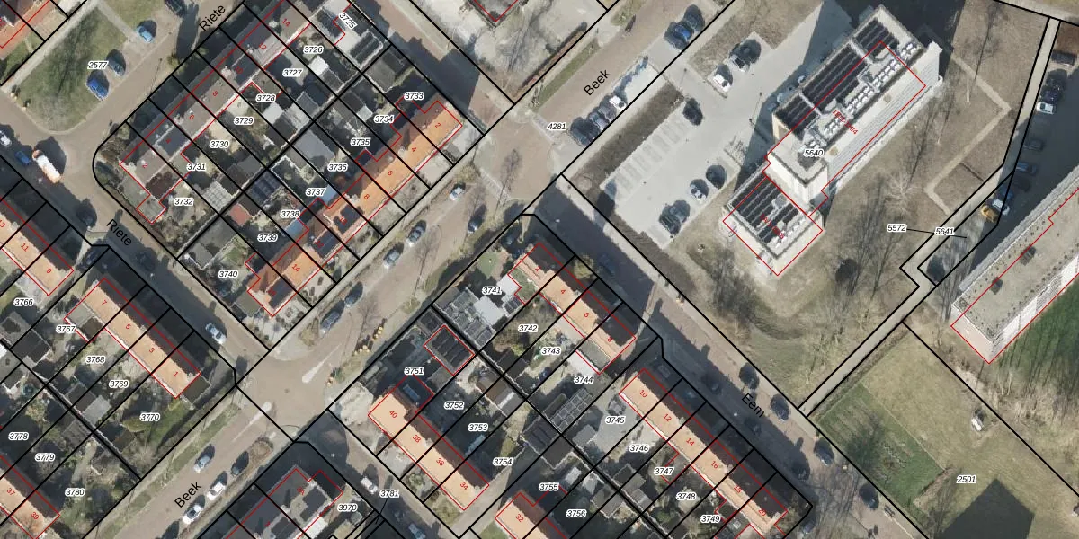 Gebruik de zoekbalk of klik op een perceel voor informatie over de adressen binnen dit perceel.