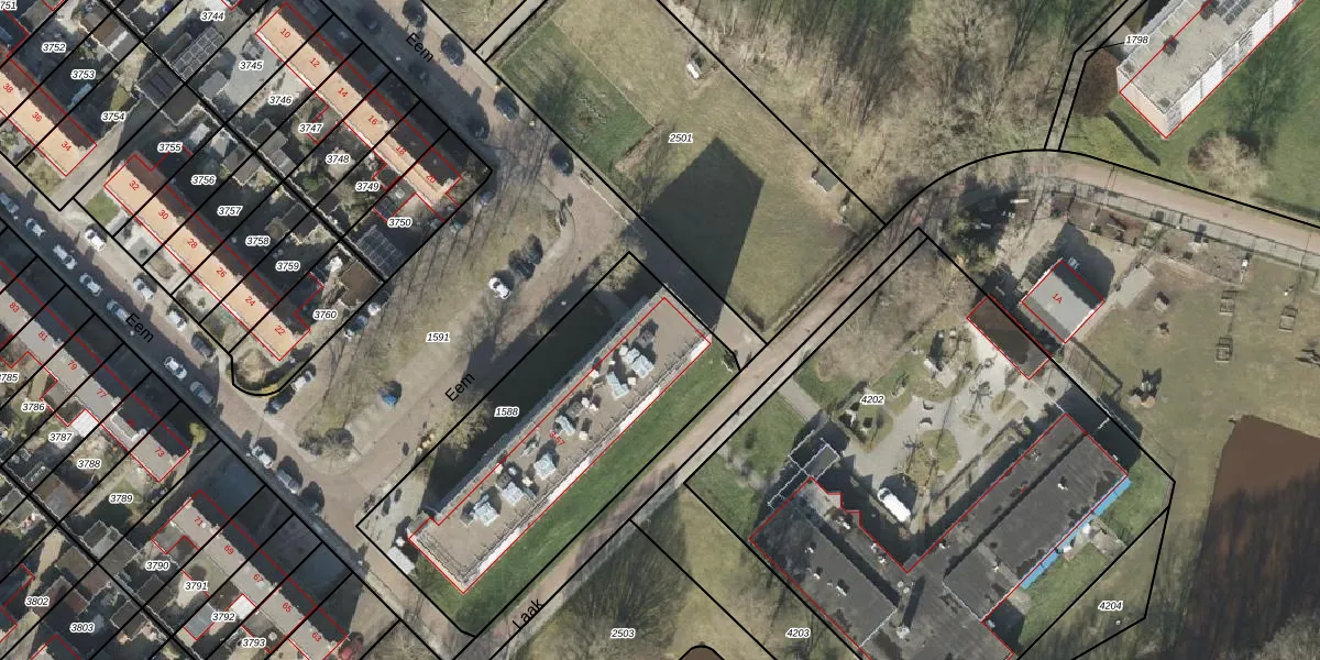 Het perceel waarop Eem 3 staat heeft een oppervlakte van 1438 m². Dit is een zeer groot perceel. De perceeloppervlakte wordt geregistreerd door het Kadaster. Gedetailleerde informatie over de maten van dit perceel kunt u vinden in het rapport Kadastrale kaart met maatvoering van Eem 3.