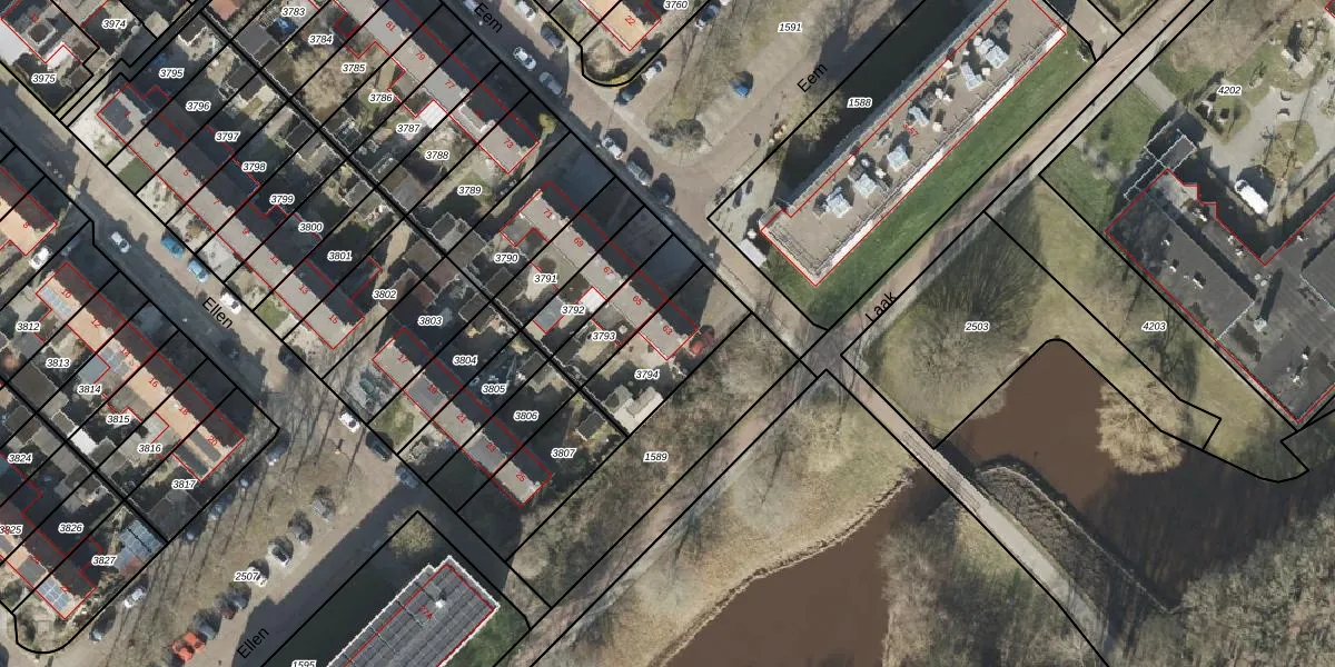 Het perceel waarop Eem 63 staat heeft een oppervlakte van 275 m². Dit is een middelgroot perceel. De perceeloppervlakte wordt geregistreerd door het Kadaster. Gedetailleerde informatie over de maten van dit perceel kunt u vinden in het rapport Kadastrale kaart met maatvoering van Eem 63.