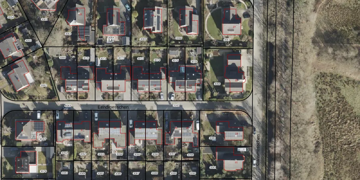 Het perceel waarop Eendmesschen 15 staat heeft een oppervlakte van 300 m². Dit is een groot perceel. De perceeloppervlakte wordt geregistreerd door het Kadaster. Gedetailleerde informatie over de maten van dit perceel kunt u vinden in het rapport Kadastrale kaart met maatvoering van Eendmesschen 15.