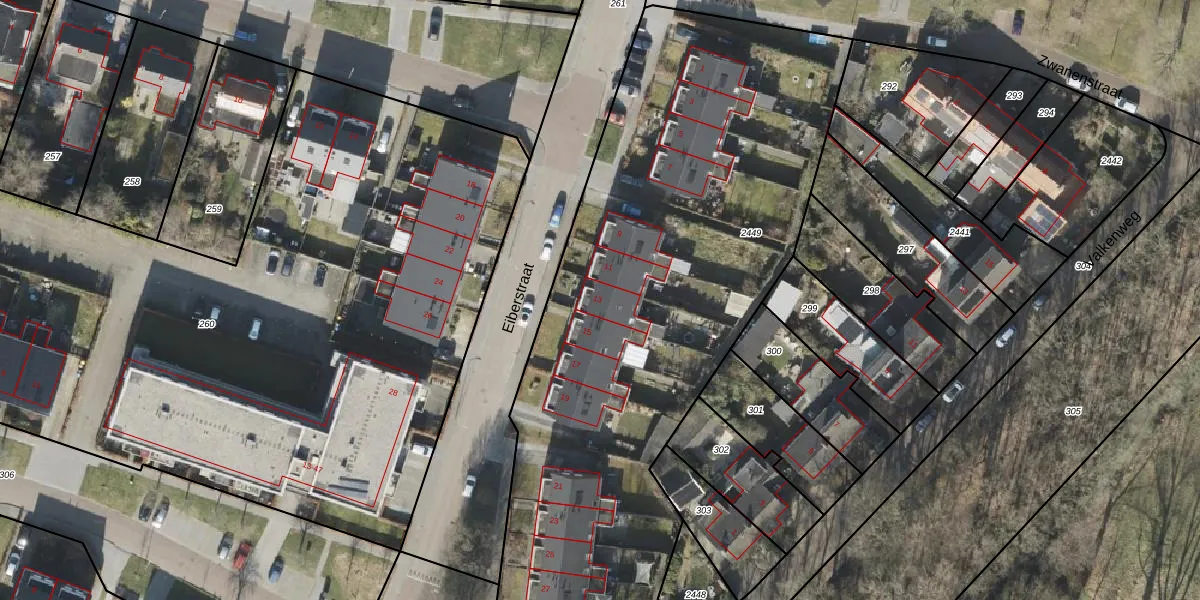Eiberstraat 13 is gelegen op kadastraal perceel ASN00V2449. Deze kadastrale aanduiding is uniek en wordt gebruikt door het Kadaster om eigendomsrechten en andere zakelijke rechten vast te leggen. Het perceel maakt onderdeel uit van de kadastrale gemeente Assen.