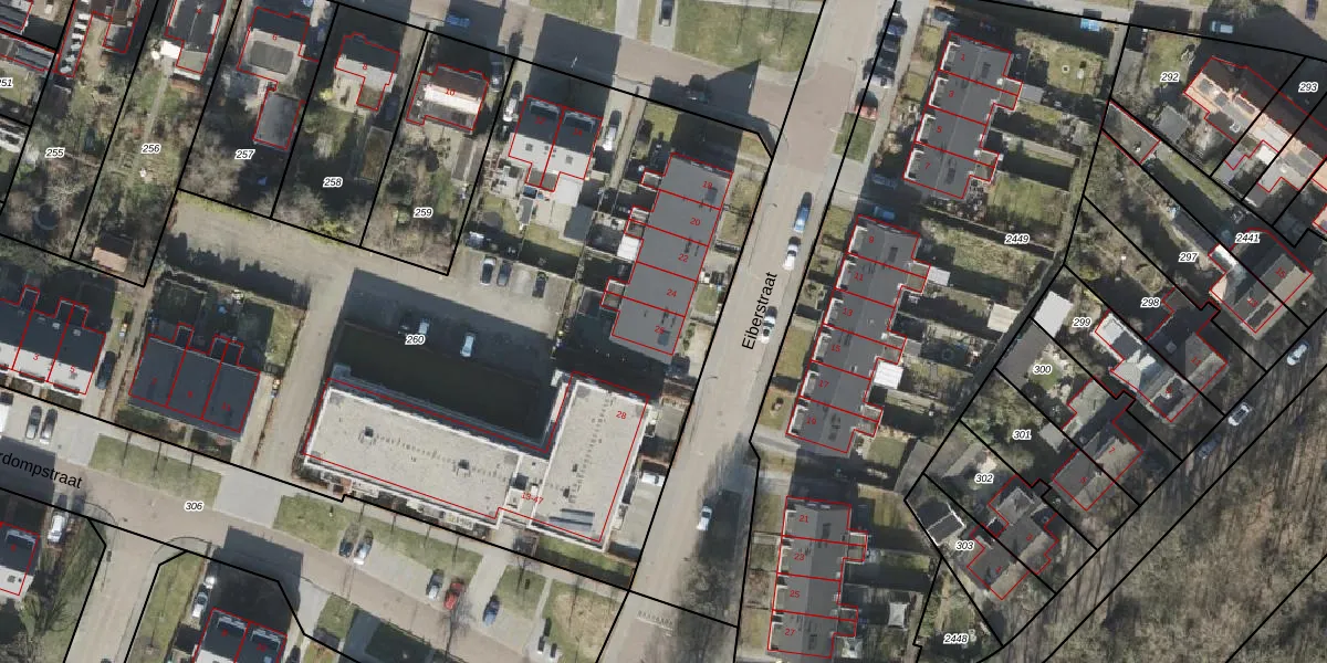 Het perceel waarop Eiberstraat 26 staat heeft een oppervlakte van 5021 m². Dit is een zeer groot perceel. De perceeloppervlakte wordt geregistreerd door het Kadaster. Gedetailleerde informatie over de maten van dit perceel kunt u vinden in het rapport Kadastrale kaart met maatvoering van Eiberstraat 26.