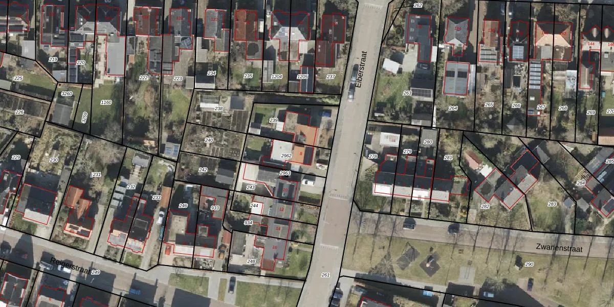 Het perceel waarop Eiberstraat 8 staat heeft een oppervlakte van 263 m². Dit is een middelgroot perceel. De perceeloppervlakte wordt geregistreerd door het Kadaster. Gedetailleerde informatie over de maten van dit perceel kunt u vinden in het rapport Kadastrale kaart met maatvoering van Eiberstraat 8.