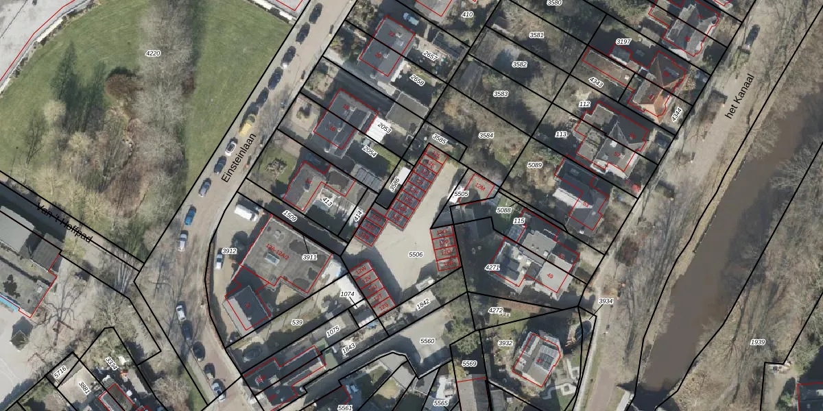 Het perceel waarop Einsteinlaan 12-G staat heeft een oppervlakte van 687 m². Dit is een groot perceel. De perceeloppervlakte wordt geregistreerd door het Kadaster. Gedetailleerde informatie over de maten van dit perceel kunt u vinden in het rapport Kadastrale kaart met maatvoering van Einsteinlaan 12-G.