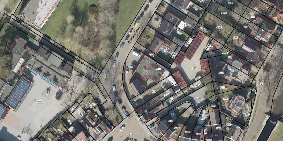Het perceel waarop Einsteinlaan 12-A staat heeft een oppervlakte van 721 m². Dit is een groot perceel. De perceeloppervlakte wordt geregistreerd door het Kadaster. Gedetailleerde informatie over de maten van dit perceel kunt u vinden in het rapport Kadastrale kaart met maatvoering van Einsteinlaan 12-A.
