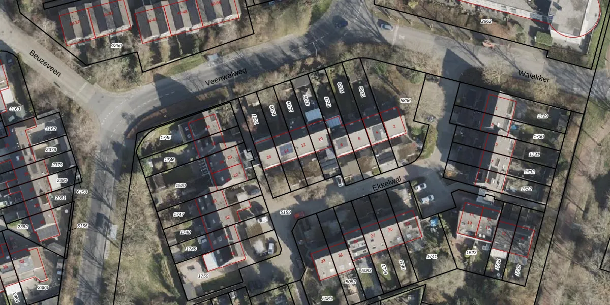 Het perceel waarop Ekkelwal 12 staat heeft een oppervlakte van 210 m². Dit is een middelgroot perceel. De perceeloppervlakte wordt geregistreerd door het Kadaster. Gedetailleerde informatie over de maten van dit perceel kunt u vinden in het rapport Kadastrale kaart met maatvoering van Ekkelwal 12.
