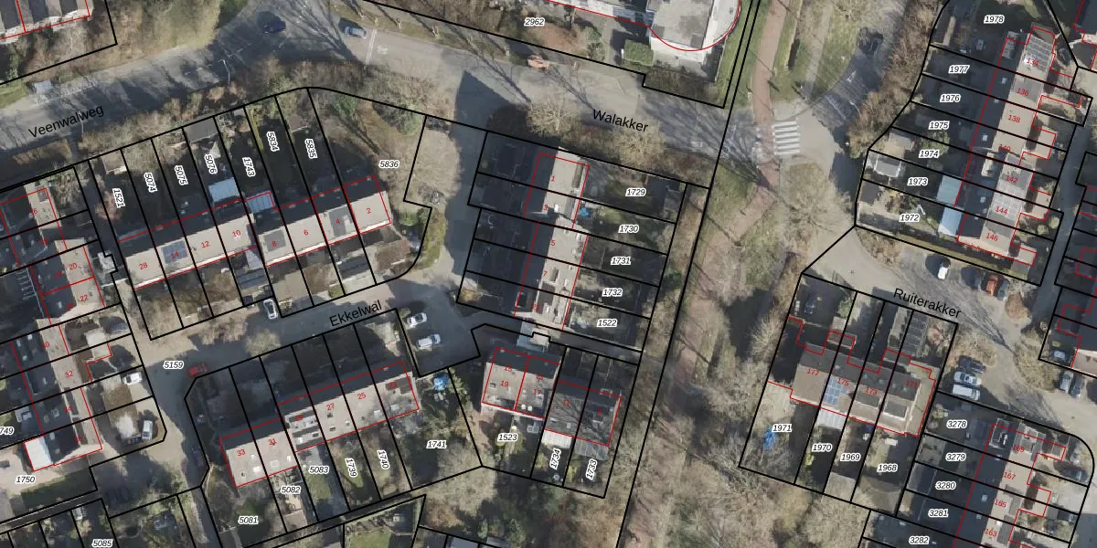 Gebruik de zoekbalk of klik op een perceel voor informatie over de adressen binnen dit perceel.