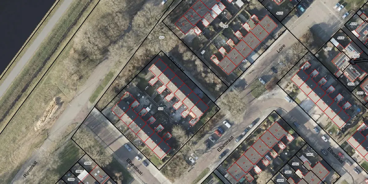 Het perceel waarop Elbestraat 17 staat heeft een oppervlakte van 2115 m². Dit is een zeer groot perceel. De perceeloppervlakte wordt geregistreerd door het Kadaster. Gedetailleerde informatie over de maten van dit perceel kunt u vinden in het rapport Kadastrale kaart met maatvoering van Elbestraat 17.