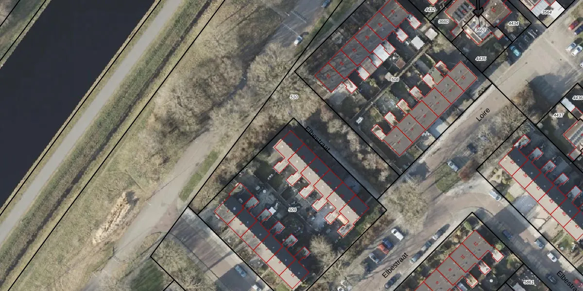 Het perceel waarop Elbestraat 23 staat heeft een oppervlakte van 2115 m². Dit is een zeer groot perceel. De perceeloppervlakte wordt geregistreerd door het Kadaster. Gedetailleerde informatie over de maten van dit perceel kunt u vinden in het rapport Kadastrale kaart met maatvoering van Elbestraat 23.