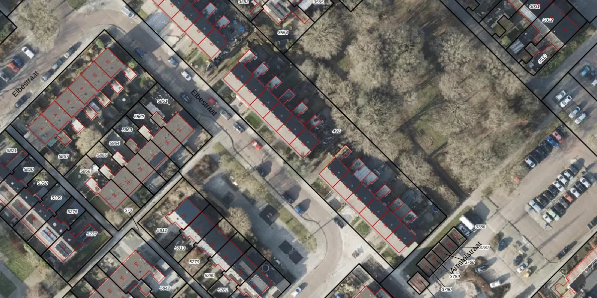 Het perceel waarop Elbestraat 59 staat heeft een oppervlakte van 3375 m². Dit is een zeer groot perceel. De perceeloppervlakte wordt geregistreerd door het Kadaster. Gedetailleerde informatie over de maten van dit perceel kunt u vinden in het rapport Kadastrale kaart met maatvoering van Elbestraat 59.
