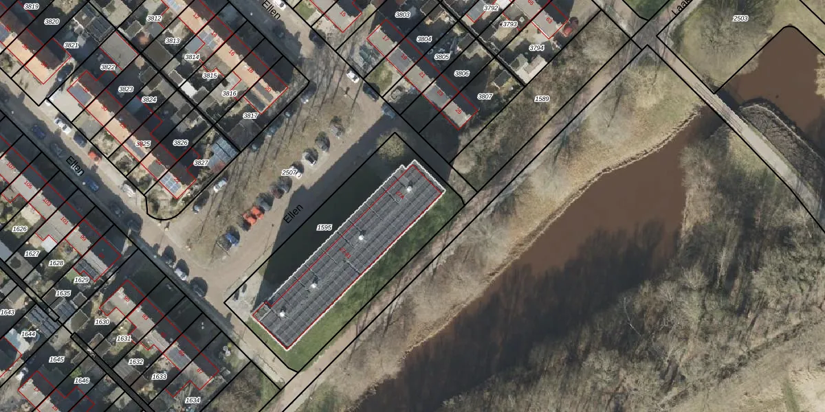 Het perceel waarop Ellen 27-A staat heeft een oppervlakte van 1440 m². Dit is een zeer groot perceel. De perceeloppervlakte wordt geregistreerd door het Kadaster. Gedetailleerde informatie over de maten van dit perceel kunt u vinden in het rapport Kadastrale kaart met maatvoering van Ellen 27-A.