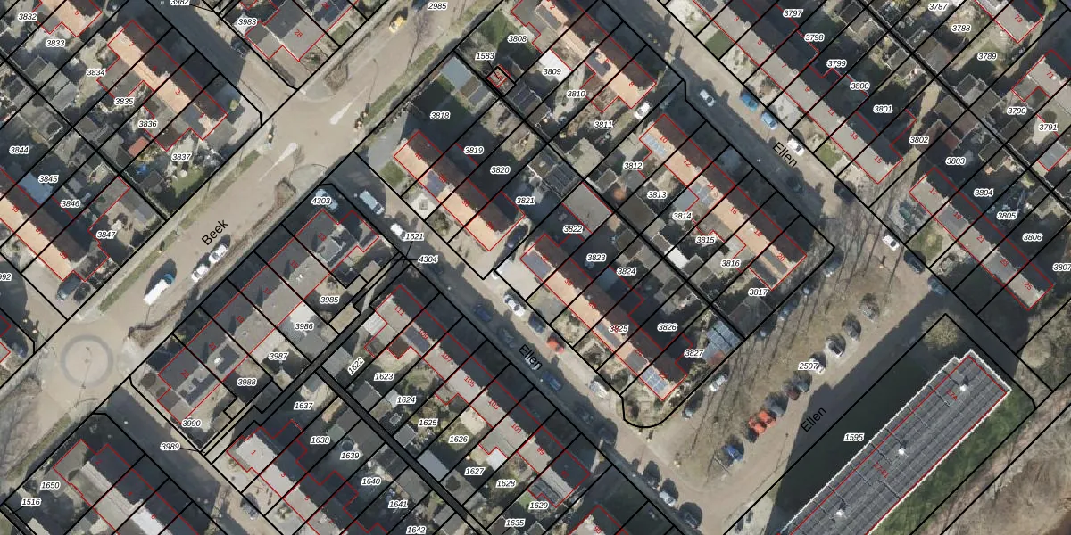Het perceel waarop Ellen 32 staat heeft een oppervlakte van 198 m². Dit is een middelgroot perceel. De perceeloppervlakte wordt geregistreerd door het Kadaster. Gedetailleerde informatie over de maten van dit perceel kunt u vinden in het rapport Kadastrale kaart met maatvoering van Ellen 32.