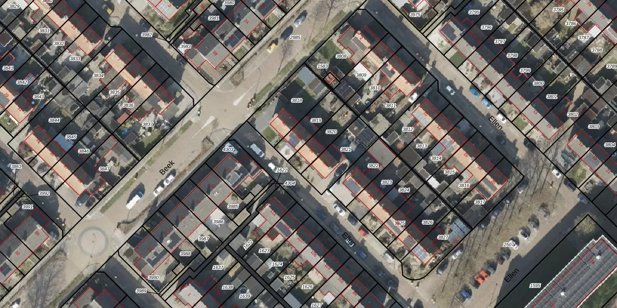 Het perceel waarop Ellen 36 staat heeft een oppervlakte van 164 m². Dit is een middelgroot perceel. De perceeloppervlakte wordt geregistreerd door het Kadaster. Gedetailleerde informatie over de maten van dit perceel kunt u vinden in het rapport Kadastrale kaart met maatvoering van Ellen 36.
