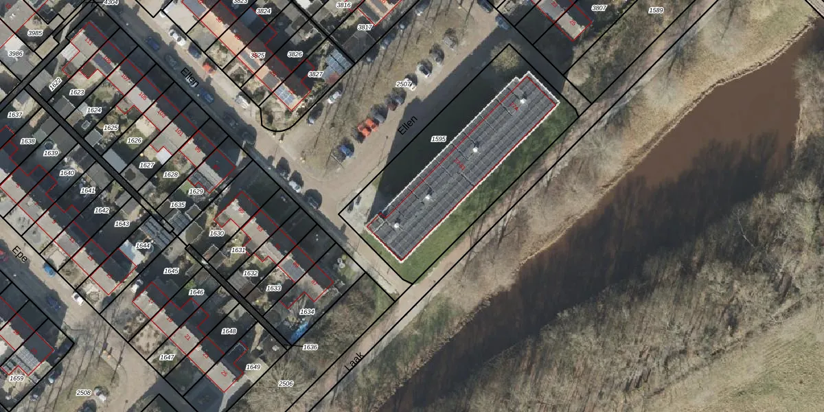 Het perceel waarop Ellen 37 staat heeft een oppervlakte van 1440 m². Dit is een zeer groot perceel. De perceeloppervlakte wordt geregistreerd door het Kadaster. Gedetailleerde informatie over de maten van dit perceel kunt u vinden in het rapport Kadastrale kaart met maatvoering van Ellen 37.