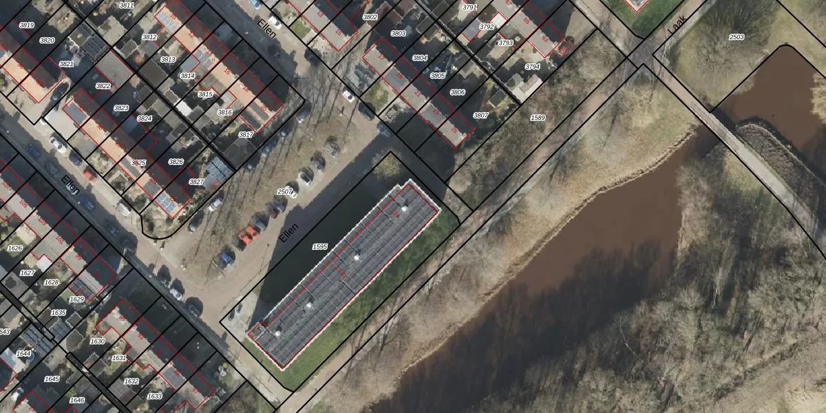 Het perceel waarop Ellen 41 staat heeft een oppervlakte van 1440 m². Dit is een zeer groot perceel. De perceeloppervlakte wordt geregistreerd door het Kadaster. Gedetailleerde informatie over de maten van dit perceel kunt u vinden in het rapport Kadastrale kaart met maatvoering van Ellen 41.