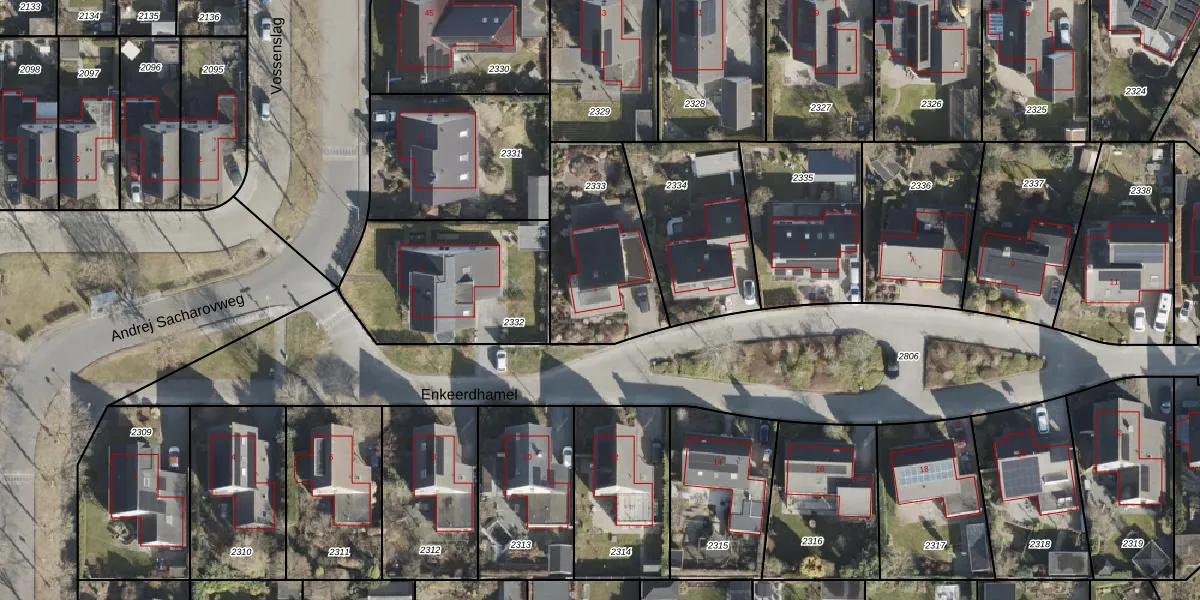 Gebruik de zoekbalk of klik op een perceel voor informatie over de adressen binnen dit perceel.